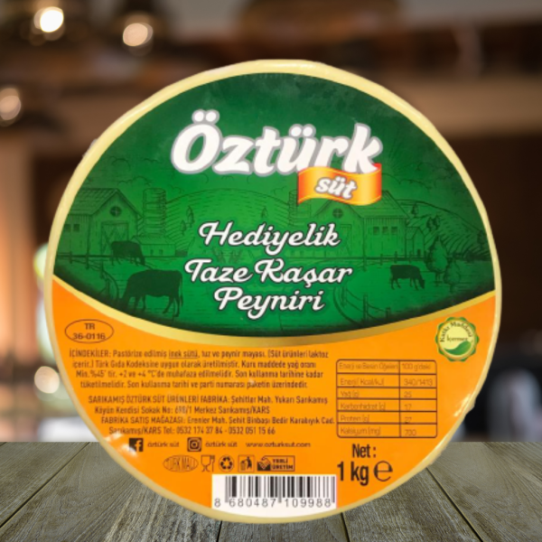 Sarıkamışın yüksek rakımlı yaylarında beslenen ineklerin doğal sütlerinden katkı maddesi kullanılmadan tamyağlı olarak sağlıklı ortamlarda öztürk süt tesisinde üretilmiştir. 1kg kars kaşarı elde etmek için 12 kg süt kullandık.